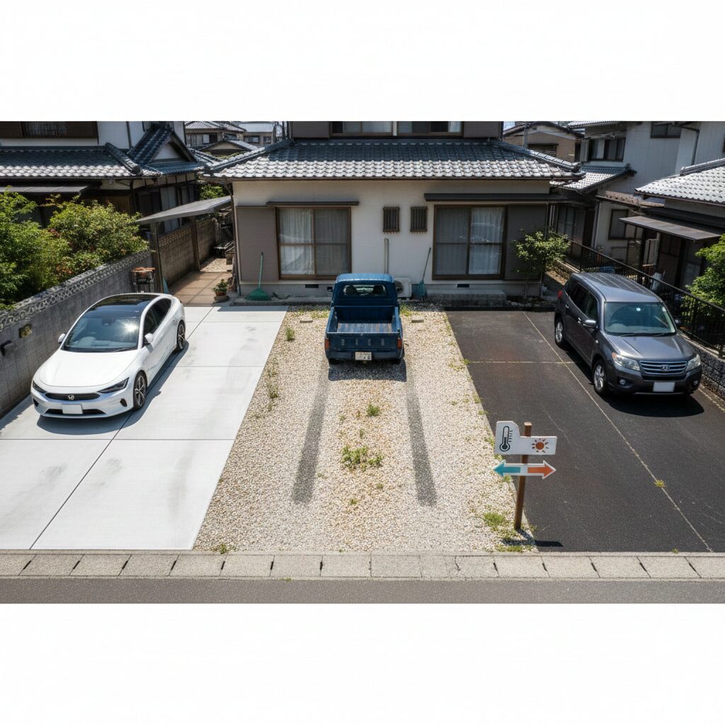 | アスファルト | 約6,000〜10,000円 | 工期短い・導入費抑えられる | 夏に熱持ちやすい・劣化で補修必要 | 敷地広い/費用を抑えたい |