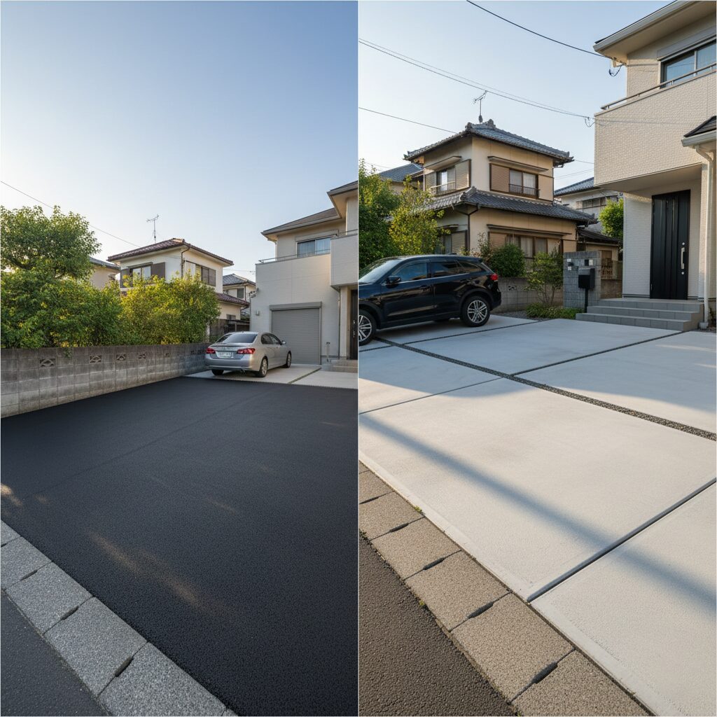 実はこの2つ、見た目だけじゃなく、費用や機能性にも大きな違いがあるんです。今回は、コンクリートとアスファルトの価格差に焦点を当てて、あなたのお家にぴったりの選び方をお伝えしていきますね!