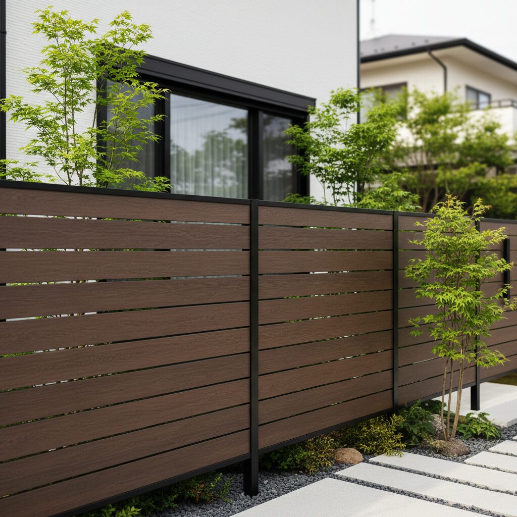 樹脂製(人工木)フェンス: 天然木のような温かみがありつつ、腐らないのが魅力。最近は本物そっくりの質感のものが多いです。ただ、熱でわずかに伸縮する特性があるため、信頼できる外構工事業者さんにしっかり施工してもらうのが安心です。